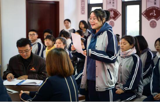 仪式上由来自19级药学1班的戴銮芯同学代表工贸学校学生发言。她首先感谢各位领导与爱心人士为学校师生提供的图书装备。她以“腹有诗书气自华”为核心观点,表明读书提升个人气质、拓宽个人眼界的重要意义;以多个古今中外耳熟能详的名人事例阐述了读书对于个人、社会、国家的重要影响。