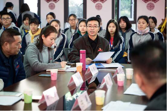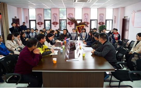 福建省教育系统关工委副主任陈晃、福建省粮储局关工委秘书长张煦光、福建巴厘岛国际美业集团爱心企业代表、福建工贸学校领导、部分班主任、学生座谈交流并合影。(如图)