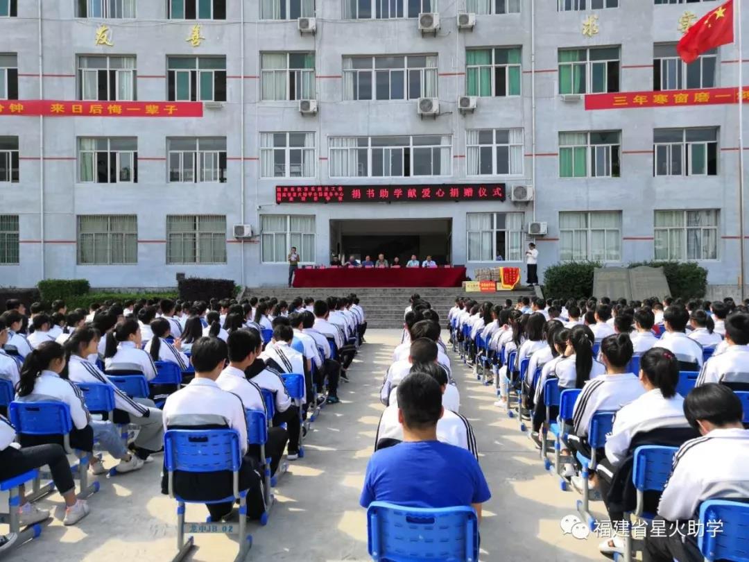 2019年5月21日下午,小满节气,福建省教育系统关工委联合福建省星火助学公益服务中心、福建经济学校一行来到福鼎沙埕港西岸的福鼎龙安中学开展捐书助学献爱心活动。省教育系统关工委秘书处、福鼎市教育局、福建经济学校有关领导,以及龙安中学300多名师生参加了捐赠活动。
